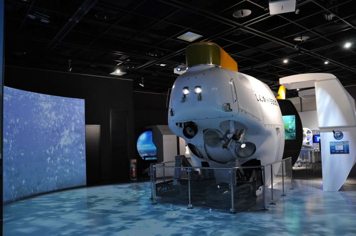 6500mの深海まで潜水することができる深海潜水調査船「しんかい6500」の実物大分解展示も。