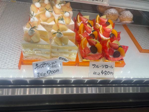 上段の「めろんボール」「すいかボール」にも、目を引かれました。 可愛い見た目でインパクトもあって、とても美味しそうでした。 ホールケーキやロールもありました。 のちほど、私がこの日に購入したケーキを紹介しますね。