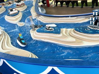 涼しく吹き抜ける風とともに、ゆっくりと水が流れる仕組みになっているので、ダイナミックな水遊びが苦手な子や、小さいお子さんでもレゴ®と水の世界を存分に楽しむことができます。