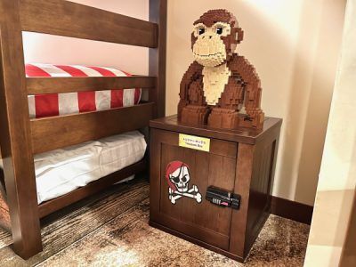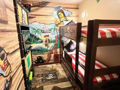 海賊になりきってお部屋を探検!宝探しのミッションがあり、その答えを部屋で導きだしていこう!子どもの寝室にあるテレビは、レゴ®の番組が放送されているので、その形をヒントにしながら、備え付けのレゴ®ブロックでいろんな形に組み立てて遊べます。