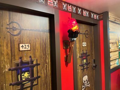 お部屋に入る前から、扉や壁、床までもテーマに合わせた仕掛けがいっぱい!テーマは全部で5つあり、ここはパイレーツをテーマにしたフロア。