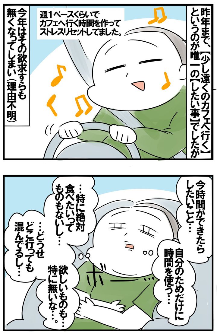 【遠くのカフェへ行ってひとり時間満喫】というのも、なぜか無くなってしまいました。