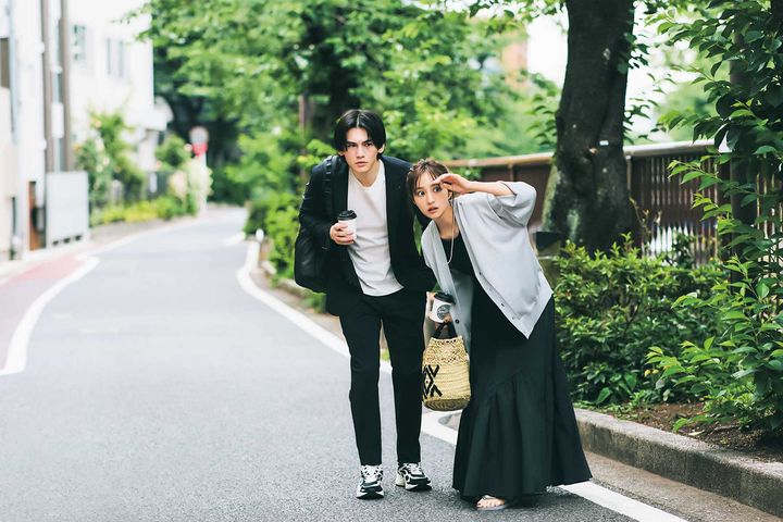 アカネが勤める(潜入している)IT企業はリモート中心、ナオキの金融機関は基本的に出勤スタイル。お互いの休みや帰宅時間が読めないから、朝の時間を有効活用。朝のお散歩、〝あさんぽ〟に行ってみた!バッグ¥16,500(ケッシュ ル エッセンシャル)ビーチサンダル¥2,800(ハワイアナス/ハワイアナスジャパン)ネックレス¥39,380(アルポ/ZUTTOHOLIC)[Mr.]Tシャツ¥11,000ジャケット¥42,900パンツ¥22,000(すべてアウール/アウール阪急メンズ大阪)スニーカー¥9,800(フィラ/フィラ カスタマーセンター)バックパック¥91,300(トゥミ/トゥミ・カスタマーセンター)その他/スタイリスト私物