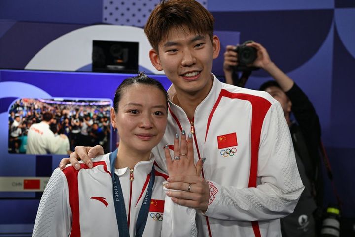 バドミントンの混合ダブルスで金メダルを獲得した中国の黄雅瓊(こう がけい)選手は表彰式の後、その場に現れた男子ダブルス代表の劉雨辰(りゅう うしん)選手から大きなブーケを手渡され、プロポーズされた。