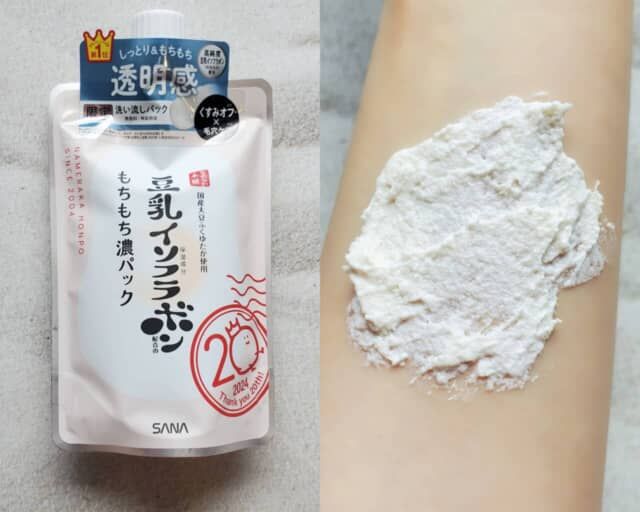 最初に紹介するのは、豆乳シリーズで定評のある「なめらか本舗」から2o周年を記念して登場した限定パック「もちもち濃パック」です。独自開発の「高純度投入イソフラボン」と「豆乳発酵液」をダブルで配合しているので、うるおいとハリを与えつつもっちりとした質感のしっとり肌に導いてくれます。