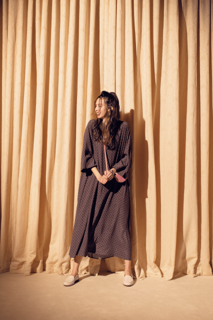 新鮮な気持ちで着られるジオメトリックフラワーはロングワンピでラフに