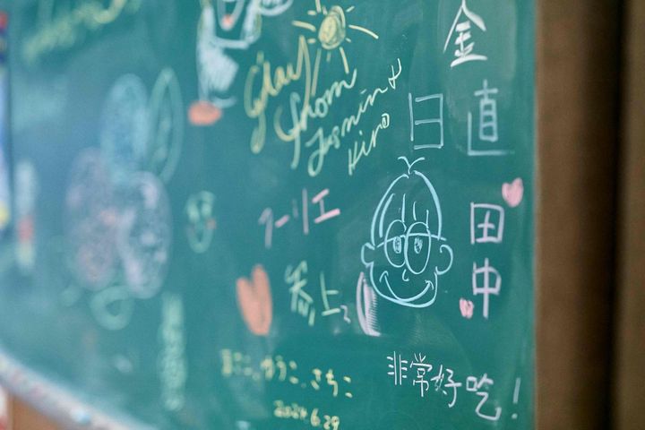 黒板は落書き自由。毎日更新されていくので形は残りませんが、記念写真を撮る楽しみがありますよ。
