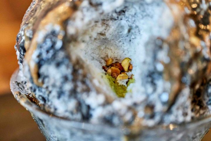食べ進めると、煎ったピスタチオのクラッシュが出てきて、香ばしさが口の中に広がります。