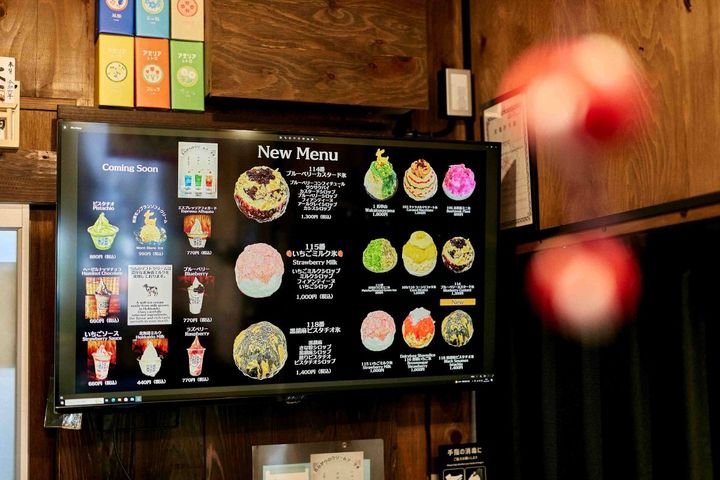 メニューを見ると、かき氷に番号が振られています。たくさんのかき氷を生み出し続け、50作目以降は登場順に番号を振ることに。そのため数字が大きいほど最近の新作です。