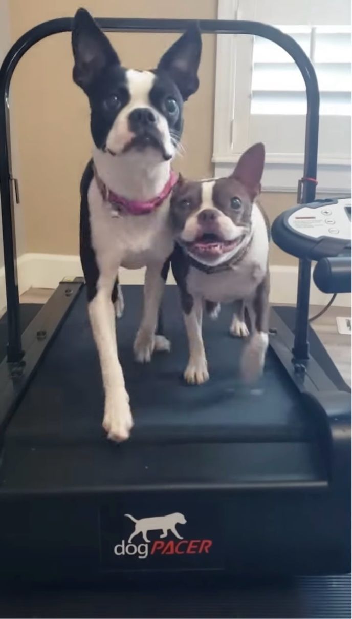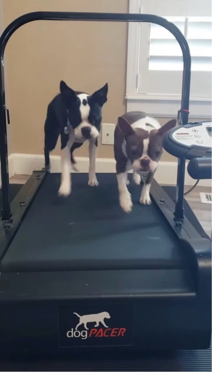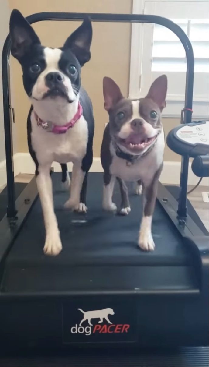 ペット用のルームランナーで仲良くジョギングするボストンテリアたち。 微笑ましいその光景は、こちらの動画からご覧いただけます。