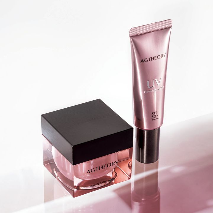 右:太陽光3種の光ケア セルフエステ感覚でブライトアップ!ボタニカルエキスを厳選配合し、エステを体験したかのようなスキンケア処方で、肌のキメを整えながら、ベタつかないストレス感0の使用感を実現。微細パールでトーンアップさせながら、UVはもちろんブルーライトや近赤外線からもプロテクト。甘美な花の香り。エイジーセオリー UVプロテクション クリーム SPF50+・PA+++ 40g ¥7,150(アクシージア)