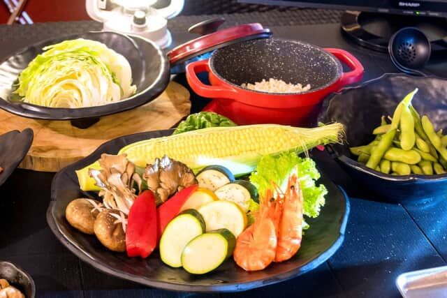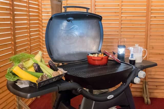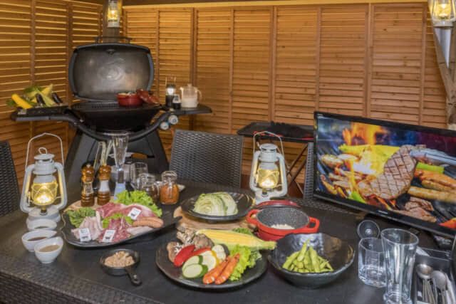 バーベキューの本場アメリカのメーカー「ウェーバー」のバーベキューコンロを用意。誰でも簡単に本格的なバーベキューを楽しめます。9月以降の気温の低い日には、ご希望があれば焼き野菜を豆乳鍋に変更することも可能です。