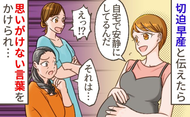 1人目を妊娠中に切迫早産になり、自宅安静と言われました。そのことを職場や親族の女性に伝えたところ……。