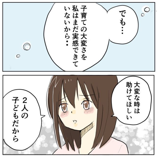「でも・・子育ての大変さを私はまだ実感できていないから・・。大変な時は助けてほしい。だって・・2人の子どもだから」と遠慮しながら伝えるカナコさん。