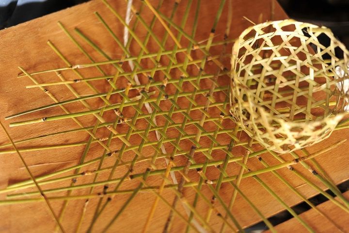 幼少期に「親の見よう見まね、体で覚えた技術は確か。なくならない」と話す小林さん。かごの材料である根曲がり竹の特性を活かし、釘や針金を使わず、すべて自然に還る素材にこだわり、いかに長く使うことができるか、人の暮らしのために役立つかを大切にかご作りをしているそう。