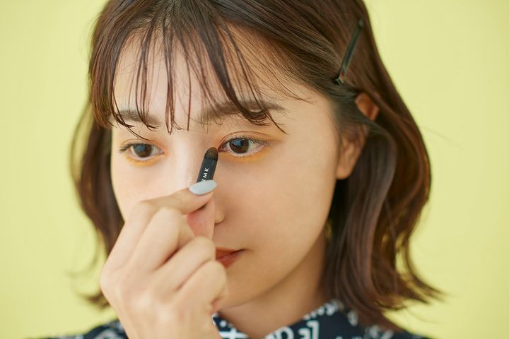オレンジカラーで目元を主役級に輝かせつつ、全体もビタミンカラーでまとめて夏らしい表情を叶えて! 今回のメイクは、とにかく目元がポイント。上まぶたの目頭と下まぶたにパキっと色をのせることで一気にしゃれ見え♡