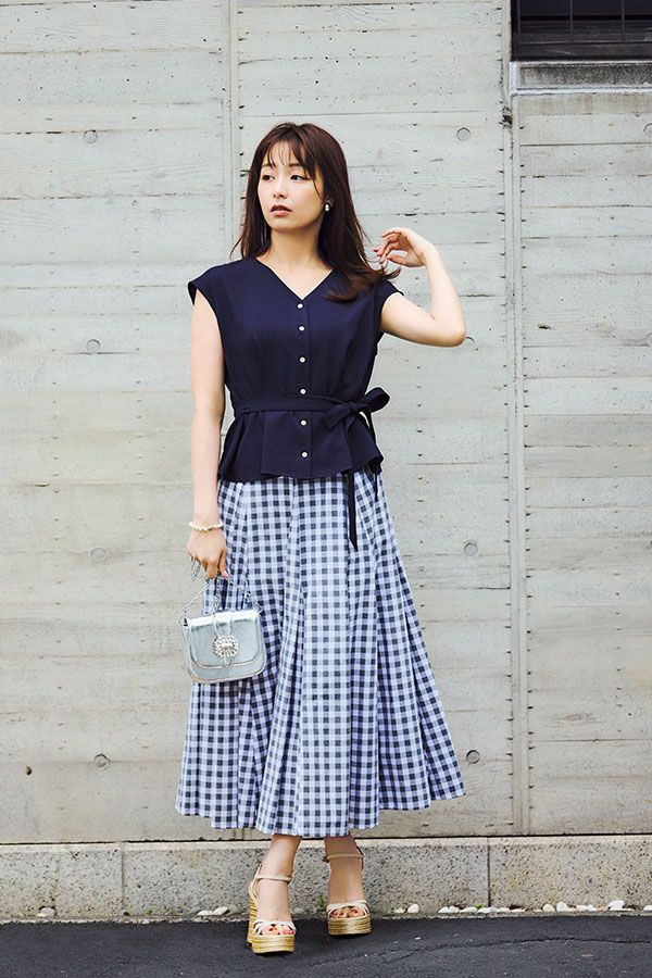 端正なベストでロマンティックなギンガムスカートにクラス感を