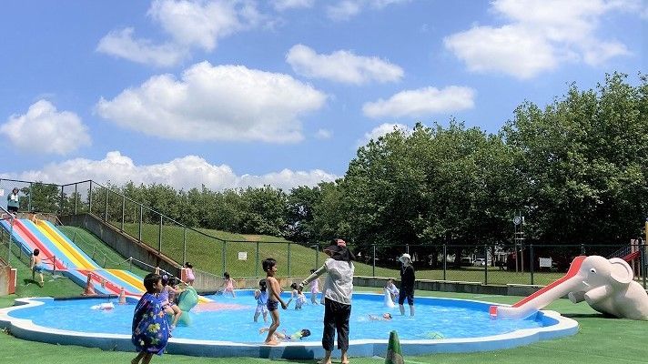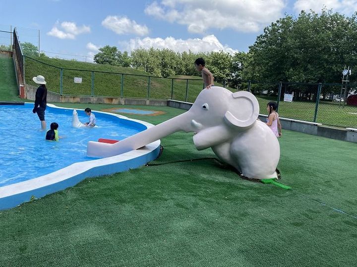 太平公園では、 「遊水プール」「ゾウさん滑り台」「ウォータースライダー」 が大人気!