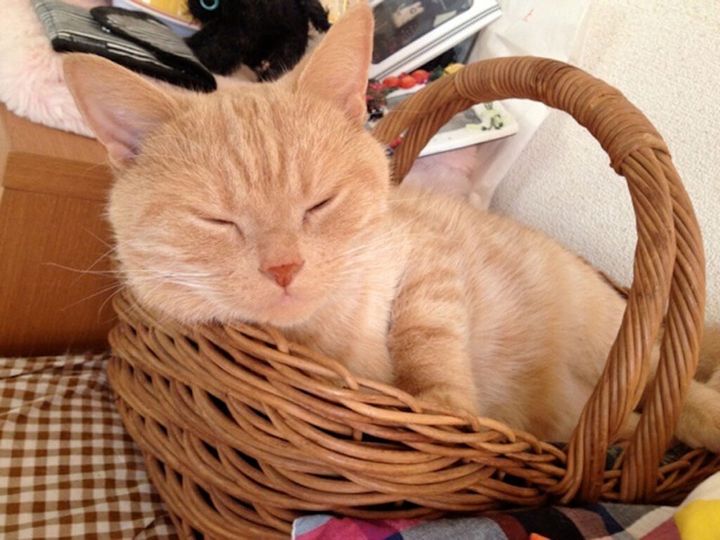 ぼくの前におうちで暮らしていた、ウーヤくんとミーヤちゃんから受け継いだ“籠のベッド”だよ。
