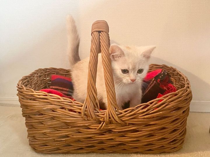 ウーヤくんミーヤちゃんが使ってきた“籠のベッド”。ぼく、大事にするんだ。