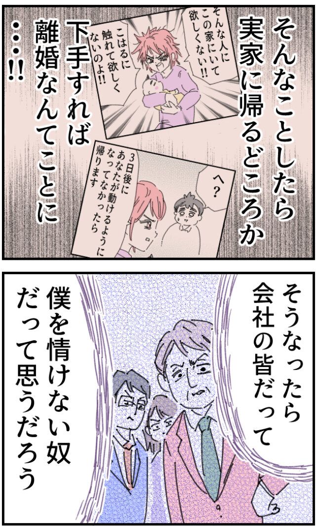 「そんなことしたら実家に帰るどころか、下手すれば離婚なんてことに・・!!」「そうなったら会社の皆だって僕を情けない奴だって思うだろう」そう考えるいちろうさんは、さらに「白石ちゃんも・・っ」と会社の後輩白石さんのことを思い浮かべました。