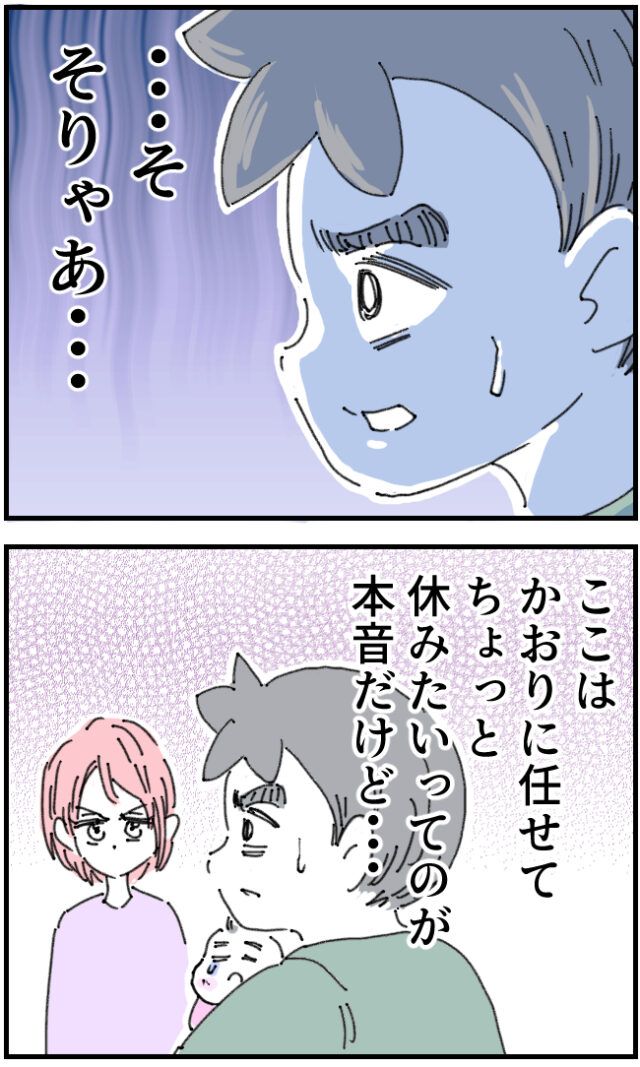 すでにこの時点で「休みたい」と思ういちろうさん、こはるちゃんが生まれてから、かおりさんがたった一人で必死にこはるちゃんと向き合ってきた凄さを、しっかり受け止めてもらいたいですね!