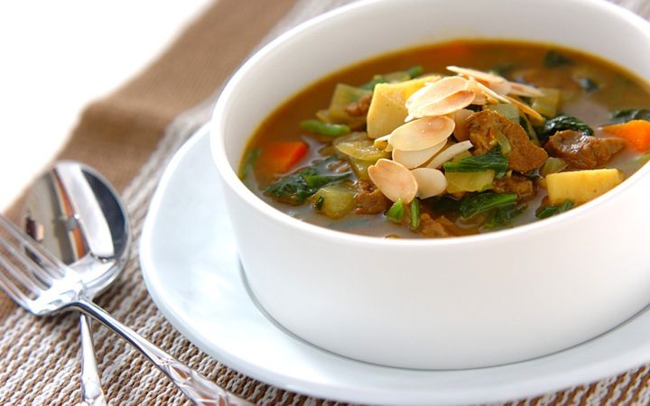 スパイシーなカレー味に仕上げる、ラム肉のヘルシースープ煮です。臭みが気にならず、野菜もたっぷり摂れてお腹も心も満たしてくれます。ラム肉×スパイスが脂肪燃焼を助けてくれそうですね。