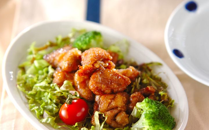 ラム肉をみんなが大好きな竜田揚げにアレンジ。下味をもみ込み、仕上げに甘ダレをからめて濃いめのしっかり味にしましょう。これならお子様でも食べられそうです。やみつきになりますよ。