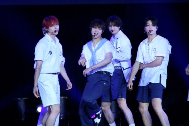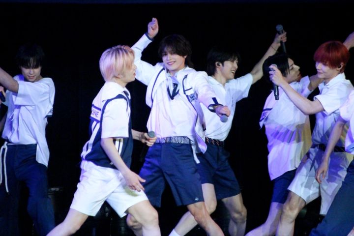 夏らしい爽やかな衣装で登場した&TEAMは、初めに「青嵐 (Aoarashi)」の収録曲「声変わり」を披露しました。