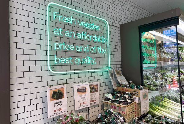 亀有にこちらのお店、オシャレなネオンの看板が目印の八百屋さん。