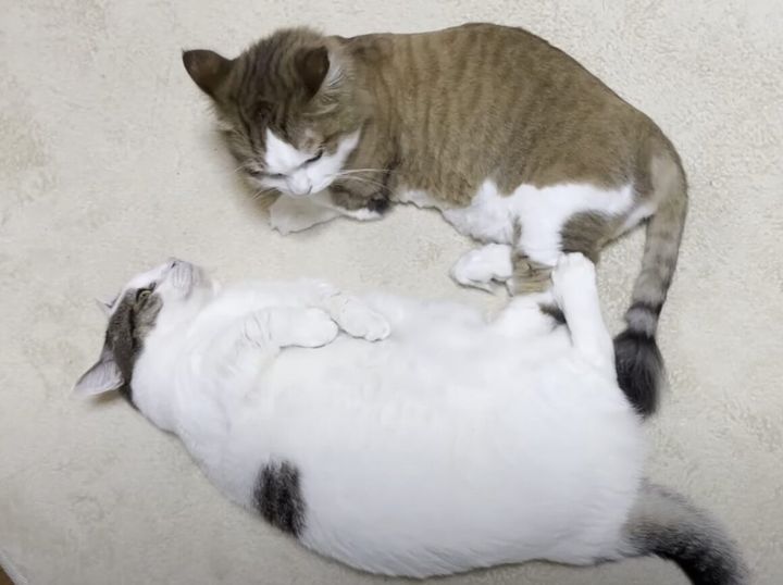 3. とっても大きくなった息子を、懸命に毛繕いしてあげるパパ猫!