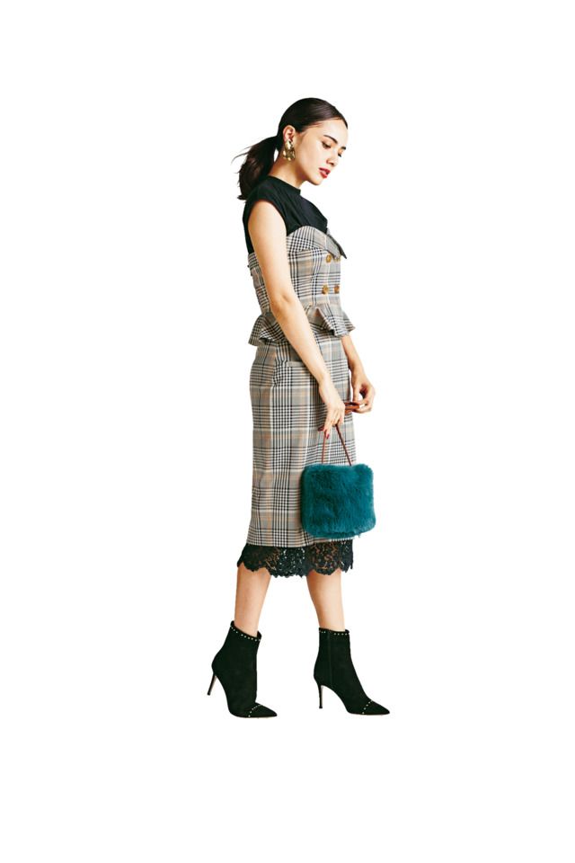 カットソー&ビスチェ[セット価格]¥15,000スカート¥16,000(ノエラ/ヒロタ)バッグ¥14,000(PROTCOL/ショールーム セッション)ブーツ¥52,000(ファビオ ルスコーニ/ファビオ ルスコーニ 六本木店)イヤリング¥7,000(ステュディオス/ステュディオス ウィメンズ 新宿店)