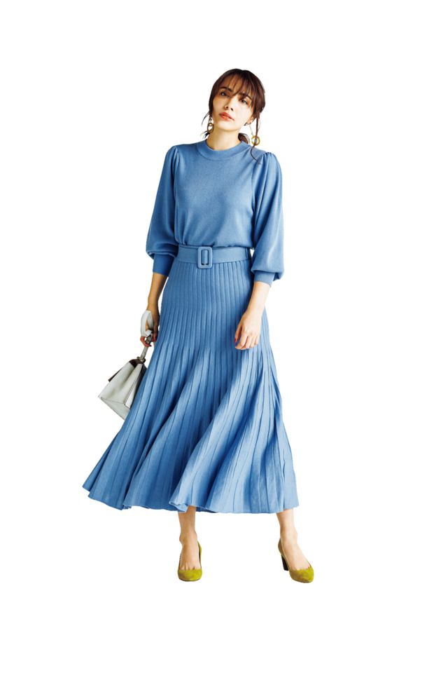 ニット&スカート[セット価格]¥14,000(Mila Owen/MilaOwen ルミネ新宿2店)バッグ¥31,000(トフ アンド ロードストーン/T&L)パンプス¥46,000(ペリーコ/アマン)ピアス¥3,200(ステラハリウッド)