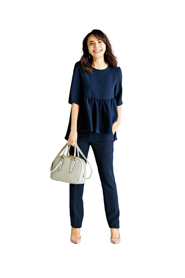 プレーンなデザインはシーンを選ばないから、「1セットは必ずクローゼットに準備」というOL 読者多数。先輩らしく、さり気ないディテールでオシャレさをアピールして。