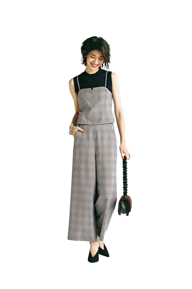 キャミソール¥7,900パンツ¥9,900ニット¥5,900(すべてグリーンレーベル リラクシング/ユナイテッドアローズ グリーンレーベル リラクシング 自由が丘店)バッグ¥110,000(WAKA TAKAHASHI/ハイブリッジ インターナショナル)パンプス¥20,000(アイリス & インク/アウトネット)イヤリング¥12,000(ドミニク・ドゥネーヴ・パリス/アルアバイル)バングル¥2,917(アビステ)