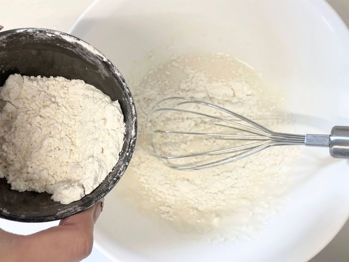 混ぜるとグルテンが発生してしまうので、混ぜないようにしてください。