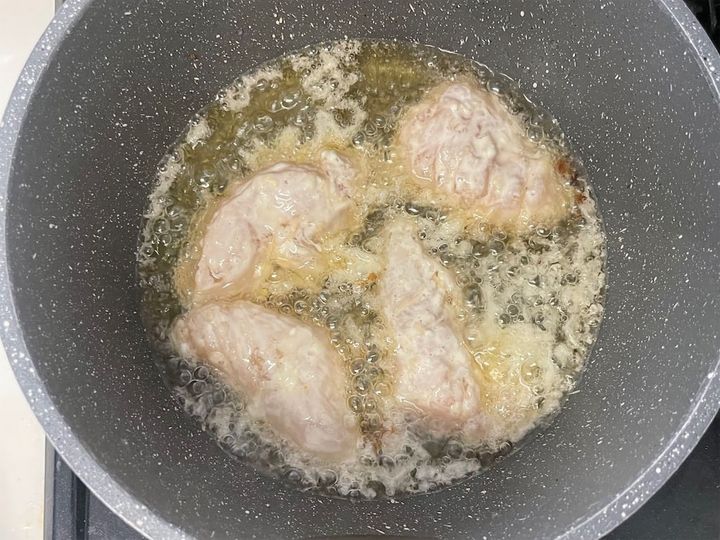 2. 160℃に熱した鍋で約2分揚げていきます。