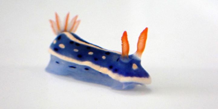 鮮やかな青色のボディに黄色の模様や赤色の触覚が美しく、まさに”海の宝石”と呼べるようなウミウシです。
