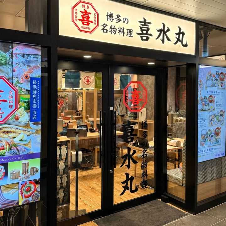 博多駅直結の商業施設「デイトスアネックス」内に位置する「博多の名物料理 喜水丸(はかたのめいぶつりょうり きすいまる)」。便利な立地で、福岡ならではの料理を満足いくまで楽しめるとして、毎日大賑わいのお店です。