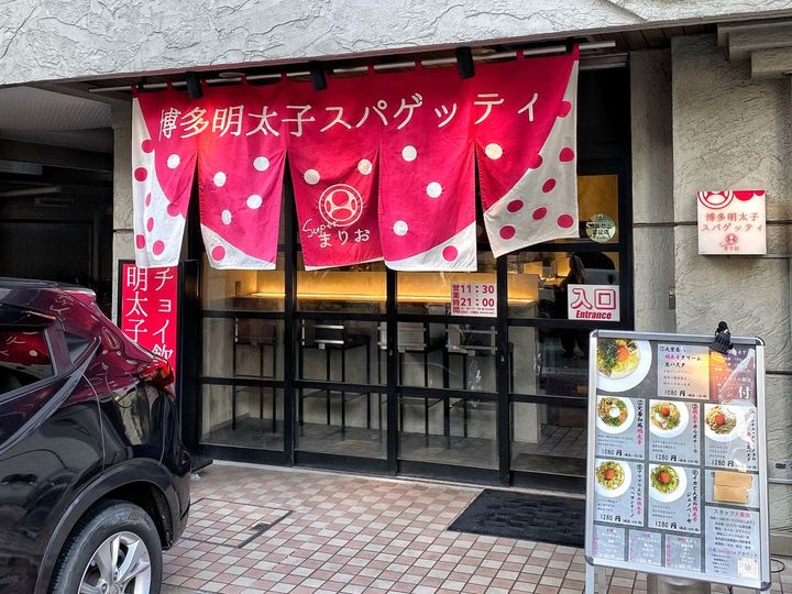 地下鉄七隈線天神南駅から徒歩約5分。「博多明太子生パスタ Superまりお(はかためんたいこなまぱすた すーぱーまりお)」は、明太子を使ったパスタの専門店。もっちもちの生パスタにたっぷりの明太子をぽてっとかわいく盛りつけた、味も見た目もダブルで楽しめるひと皿が魅力です。