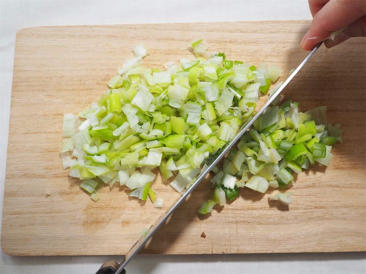 2. 長ねぎをみじん切りにする。