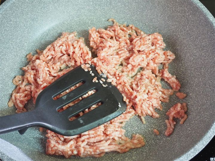 豚ひき肉はフライパンに入れたらすぐにいじらないのがポイント。ひと呼吸おいてからほぐしましょう!焼き付けるように焼くことで肉の臭みがやわらぐとのこと。何も追加することなく臭みを抑えられるなんてうれしい!
