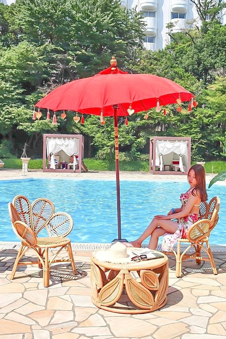 今年はアジアンリゾートをテーマにしており、アジアンなパラソルやオシャレなカバナでおとなラグジュアリーなプールを楽しむことができます。