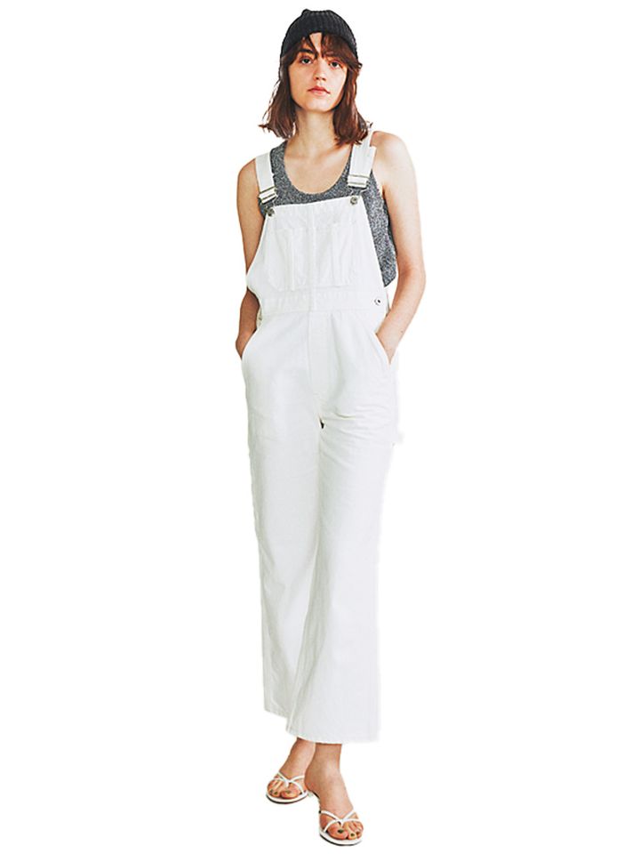 旬のスポーティなムードを生かして疲れないオシャレを極めるのもあり。ラフなのに女っぽさもにじむ白のサロペットを軸に、選びや着方に工夫を凝らして「大人のボーイッシュ」を敢行。