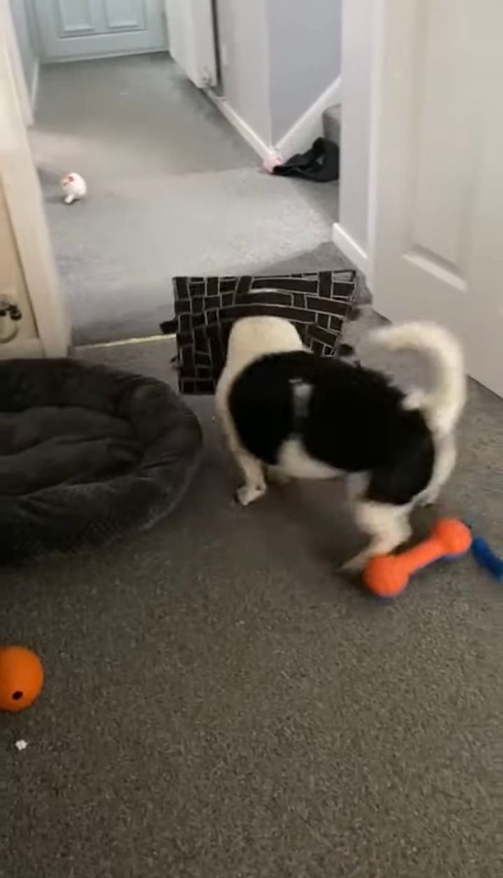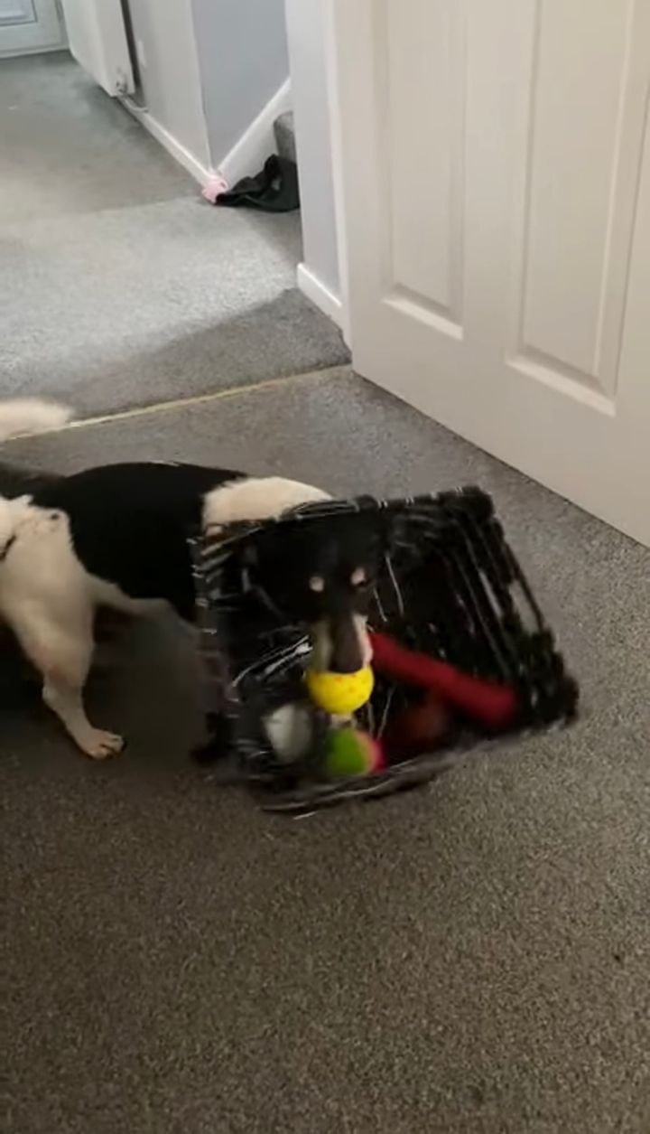 3. 愛犬はオモチャ箱のボールをゲット!なのに遊べない不思議な状況になっちゃった!?【海外・動画】