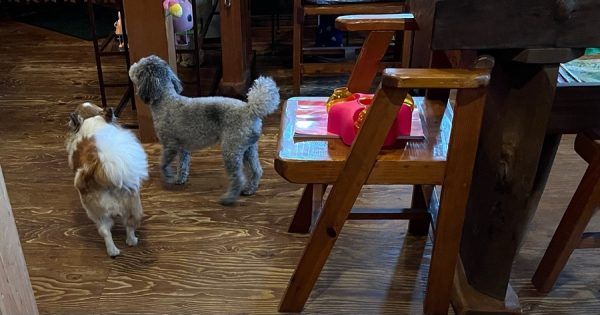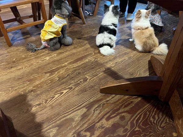 オーナーさん、大の動物好きでわんちゃん同伴OKのカフェなんです♪ 毎日、わんちゃん好きなお客さんが集まっているようで、次から次へと沢山のわんちゃん連れのお客さんがやって来ます♪ 私の膝にも可愛いわんちゃんが座りました。