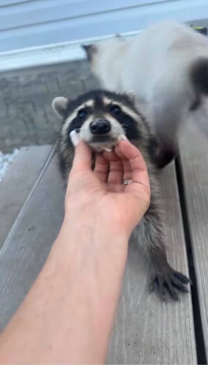 しかし、撮影者さんは驚きつつもアライグマをナデナデ。 アライグマもナデてもらえて、まんざらでもなさそうですね。