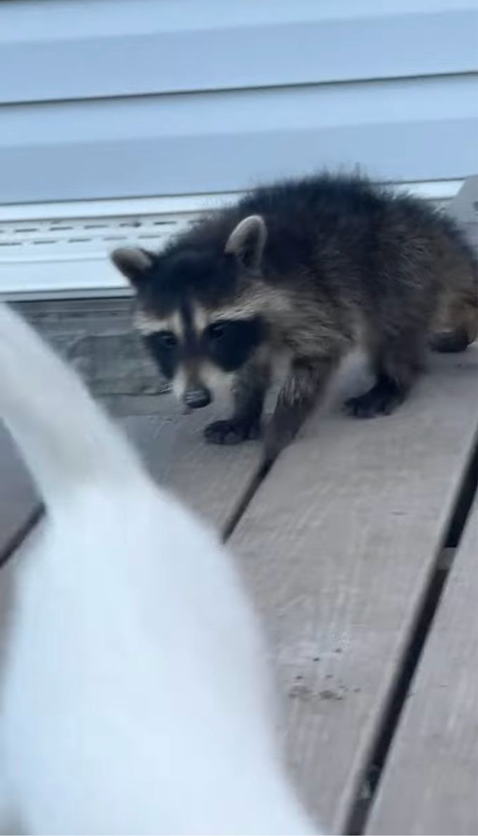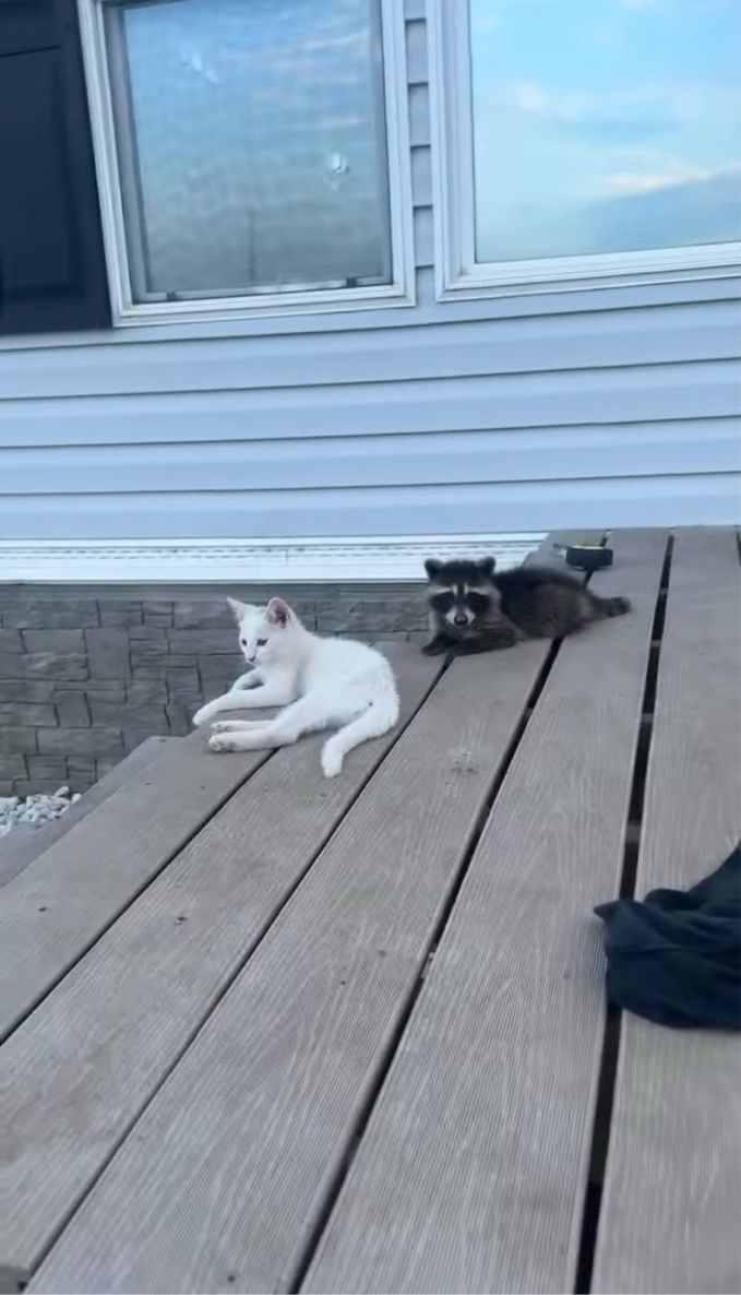 子猫たちにまぎれて玄関先でくつろぐアライグマ。 驚愕とほのぼのが混ざるその様子は、こちらの動画からご覧いただけます。