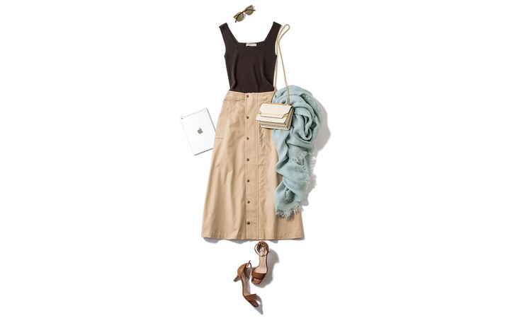 カジュアルなディテールにこだわったAラインスカート。チノスカート¥24,200(バブアー/バブアー パートナーズ ジャパン)