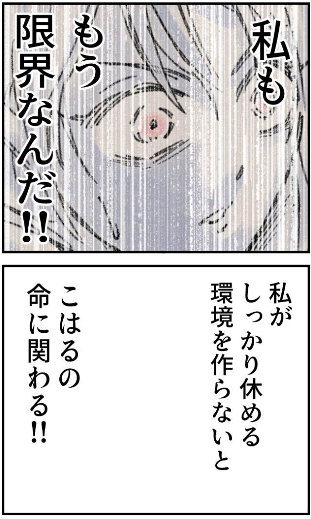 そして「私ももう限界なんだ!!」そう悟ったかおりさんは、「私がしっかり休める環境を作らないと、こはるの命に関わる!!」とあらためて実感しました。